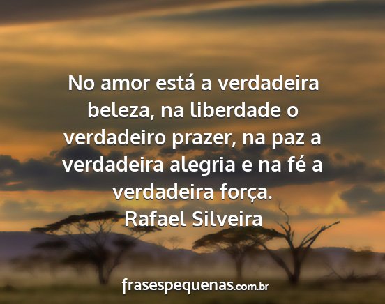 No amor está a verdadeira beleza, na liberdade o verdadeiro prazer, na paz a verdadeira alegria e na fé a verdadeira força.Rafael Silveira