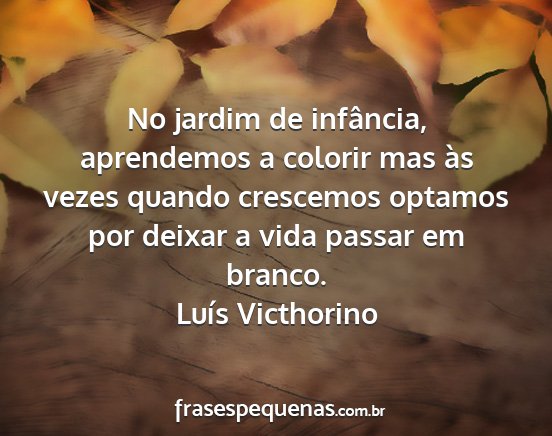 No jardim de infância, aprendemos a colorir mas às vezes quando crescemos optamos por deixar a vida passar em branco.Luís Victhorino