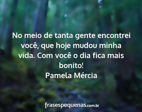 No meio de tanta gente encontrei você, que hoje mudou minha vida. Com você o dia fica mais bonito!Pamela Mércia