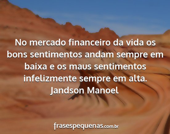 No mercado financeiro da vida os bons sentimentos andam sempre em baixa e os maus sentimentos infelizmente sempre em alta.Jandson Manoel