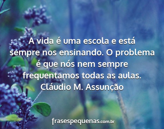 A vida é uma escola e está sempre nos ensinando. O problema é que nós nem sempre frequentamos todas as aulas.Cláudio M. Assunção