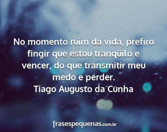 No momento ruim da vida, prefiro fingir que estou tranqüilo e vencer, do que transmitir meu medo e perder.Tiago Augusto da Cunha