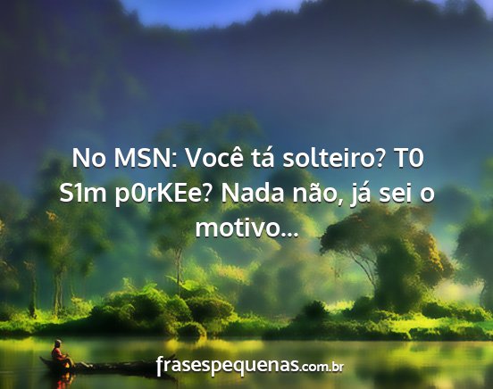 No MSN: Você tá solteiro? T0 S1m p0rKEe? Nada não, já sei o motivo...