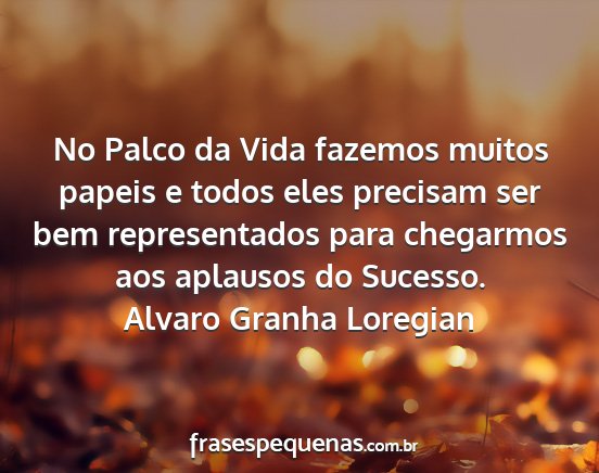 No Palco da Vida fazemos muitos papeis e todos eles precisam ser bem representados para chegarmos aos aplausos do Sucesso.Alvaro Granha Loregian