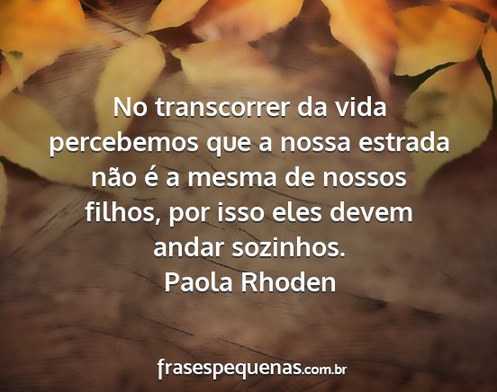 No transcorrer da vida percebemos que a nossa estrada não é a mesma de nossos filhos, por isso eles devem andar sozinhos.Paola Rhoden