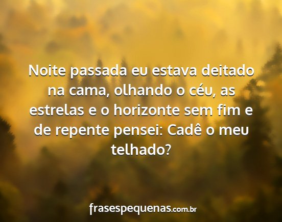 Noite passada eu estava deitado na cama, olhando o céu, as estrelas e o horizonte sem fim e de repente pensei: Cadê o meu telhado?