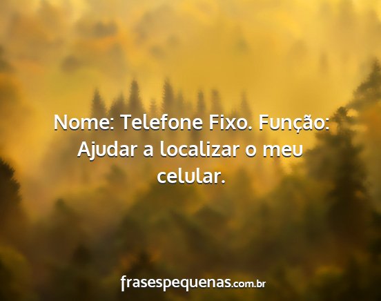 Nome: Telefone Fixo. Função: Ajudar a localizar o meu celular.