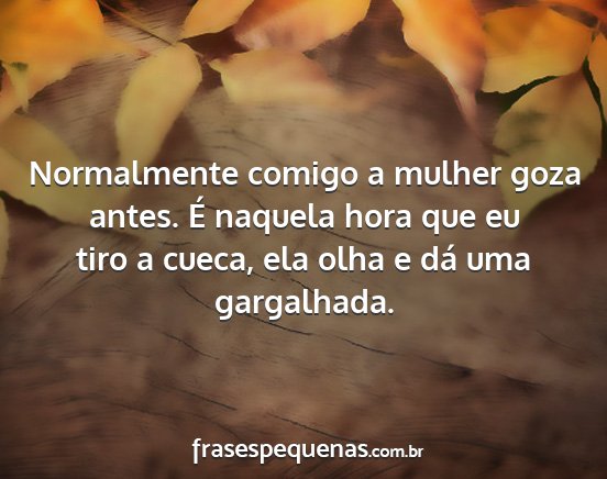 Normalmente comigo a mulher goza antes. É naquela hora que eu tiro a cueca, ela olha e dá uma gargalhada.