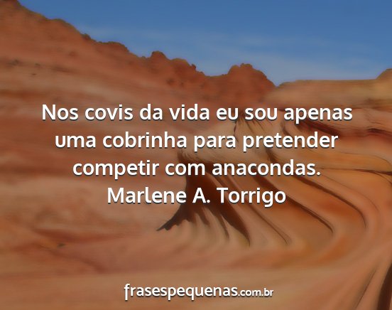 Nos covis da vida eu sou apenas uma cobrinha para pretender competir com anacondas.Marlene A. Torrigo