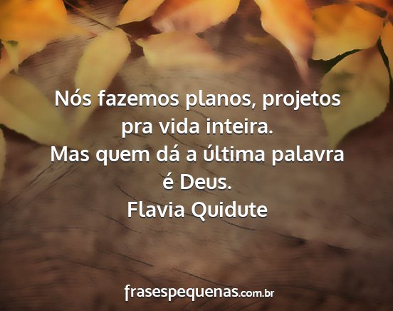 Nós fazemos planos, projetos pra vida inteira.