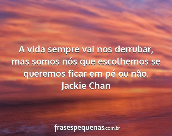A vida sempre vai nos derrubar, mas somos nós que escolhemos se queremos ficar em pé ou não.Jackie Chan