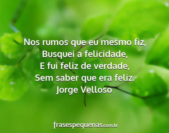 Sem saber que era feliz.Jorge Velloso