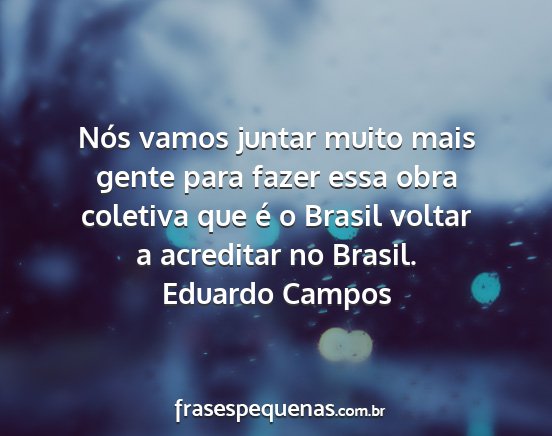 Nós vamos juntar muito mais gente para fazer essa obra coletiva que é o Brasil voltar a acreditar no Brasil.Eduardo Campos