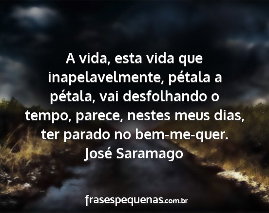 A vida, esta vida que inapelavelmente, pétala a pétala, vai desfolhando o tempo, parece, nestes meus dias, ter parado no bem-me-quer.José Saramago