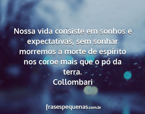 Nossa vida consiste em sonhos e expectativas, sem sonhar morremos a morte de espírito nos coroe mais que o pó da terra.Collombari