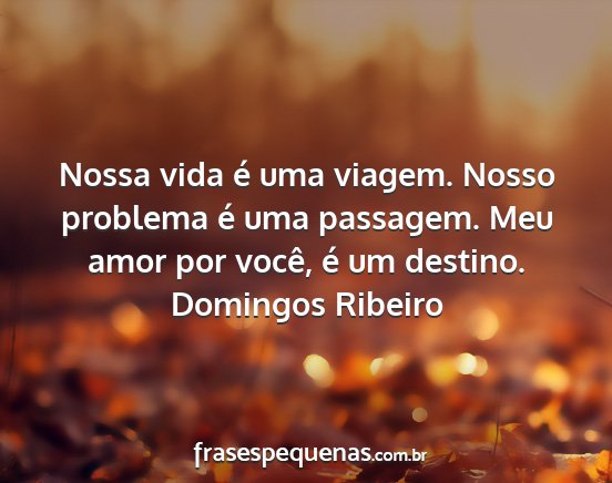 Nossa vida é uma viagem. Nosso problema é uma passagem. Meu amor por você, é um destino.Domingos Ribeiro