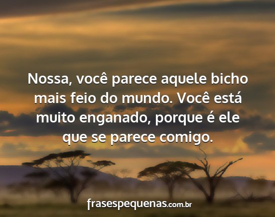 Nossa, você parece aquele bicho mais feio do mundo. Você está muito enganado, porque é ele que se parece comigo.