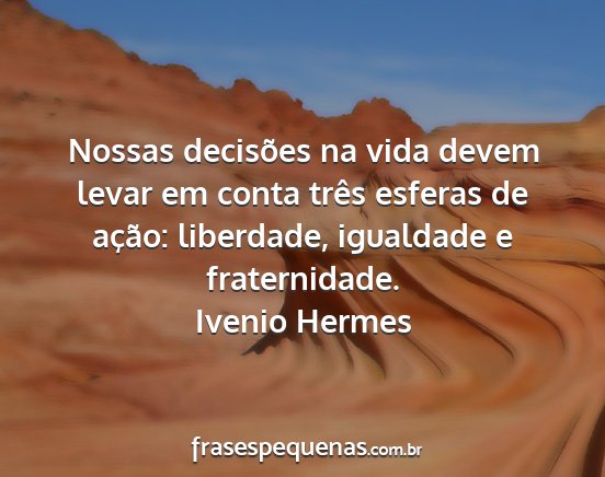 Nossas decisões na vida devem levar em conta três esferas de ação: liberdade, igualdade e fraternidade.Ivenio Hermes