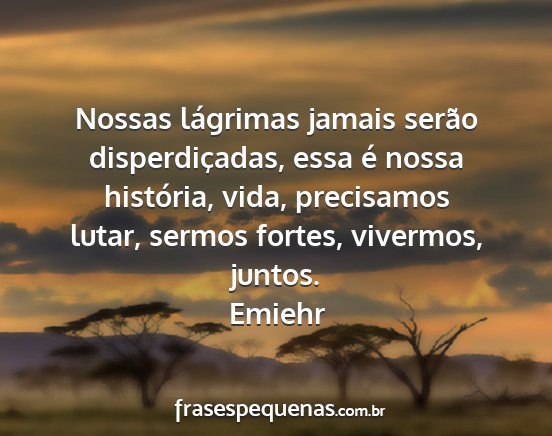 Nossas lágrimas jamais serão disperdiçadas, essa é nossa história, vida, precisamos lutar, sermos fortes, vivermos, juntos.Emiehr