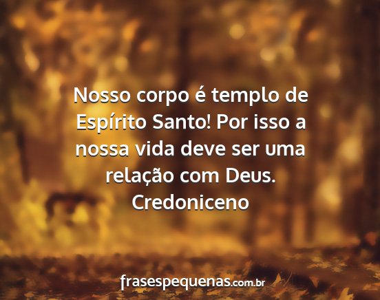 Nosso corpo é templo de Espírito Santo! Por isso a nossa vida deve ser uma relação com Deus.Credoniceno