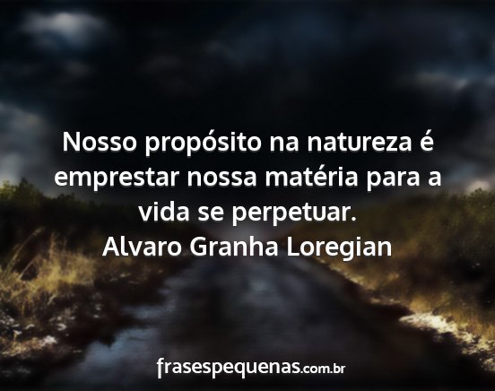 Nosso propósito na natureza é emprestar nossa matéria para a vida se perpetuar.Alvaro Granha Loregian
