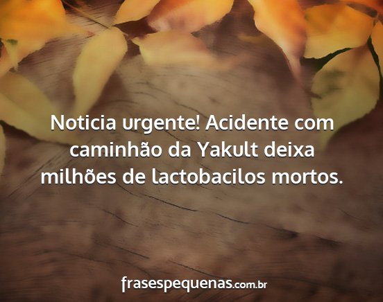 Noticia urgente! Acidente com caminhão da Yakult deixa milhões de lactobacilos mortos.