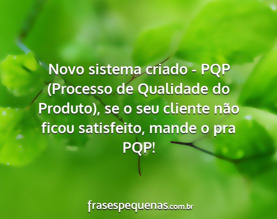 Novo sistema criado - PQP (Processo de Qualidade do Produto), se o seu cliente não ficou satisfeito, mande o pra PQP!
