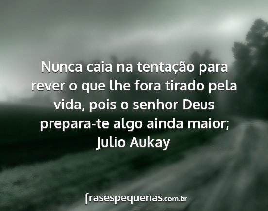 Nunca caia na tentação para rever o que lhe fora tirado pela vida, pois o senhor Deus prepara-te algo ainda maior;Julio Aukay