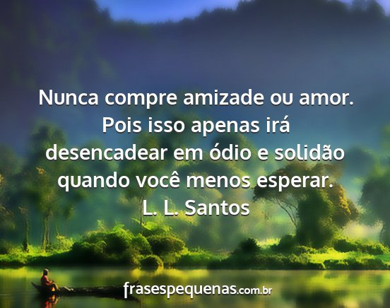 Nunca compre amizade ou amor. Pois isso apenas irá desencadear em ódio e solidão quando você menos esperar.L. L. Santos