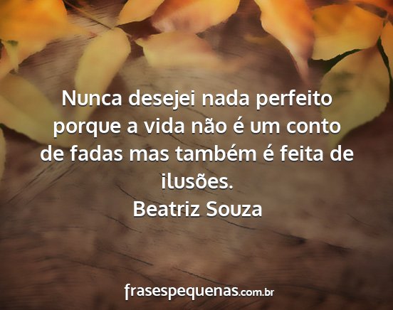 Nunca desejei nada perfeito porque a vida não é um conto de fadas mas também é feita de ilusões.Beatriz Souza