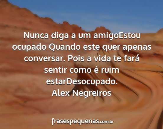 Nunca diga a um amigoEstou ocupado Quando este quer apenas conversar. Pois a vida te fará sentir como é ruim estarDesocupado.Alex Negreiros