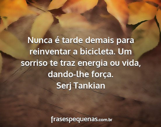 Nunca é tarde demais para reinventar a bicicleta. Um sorriso te traz energia ou vida, dando-lhe força.Serj Tankian