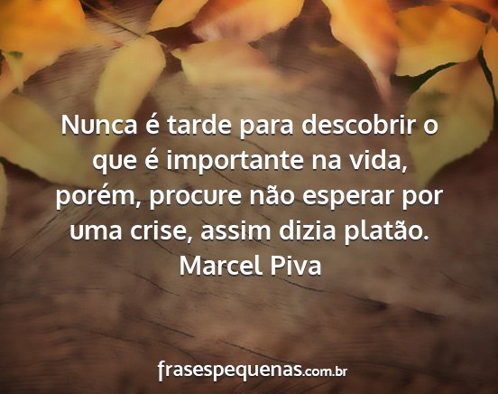 Nunca é tarde para descobrir o que é importante na vida, porém, procure não esperar por uma crise, assim dizia platão.Marcel Piva