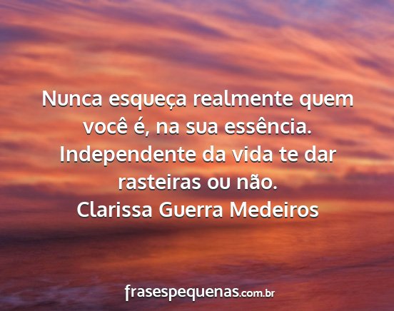 Nunca esqueça realmente quem você é, na sua essência. Independente da vida te dar rasteiras ou não.Clarissa Guerra Medeiros