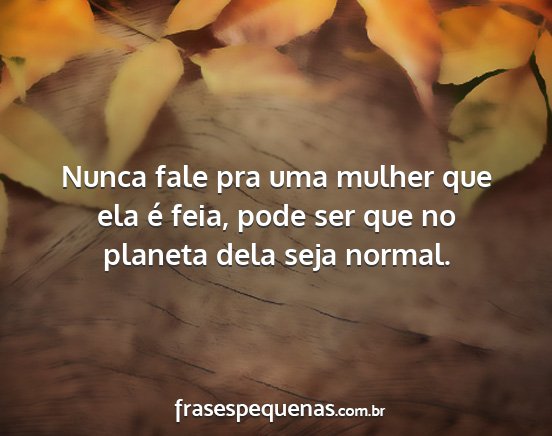 Nunca fale pra uma mulher que ela é feia, pode ser que no planeta dela seja normal.