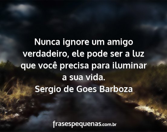 Nunca ignore um amigo verdadeiro, ele pode ser a luz que você precisa para iluminar a sua vida.Sergio de Goes Barboza
