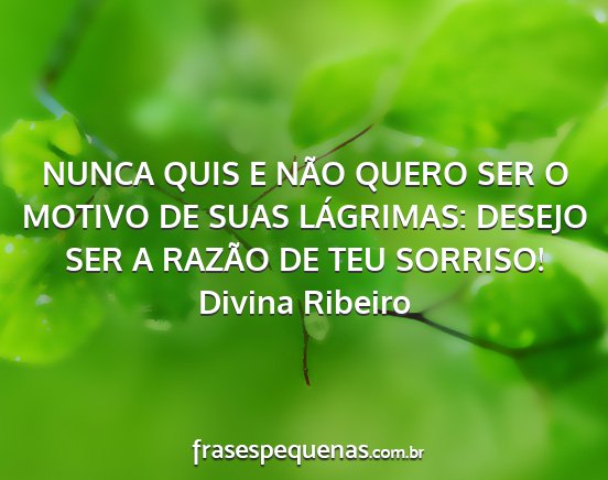 NUNCA QUIS E NÃO QUERO SER O MOTIVO DE SUAS LÁGRIMAS: DESEJO SER A RAZÃO DE TEU SORRISO!Divina Ribeiro