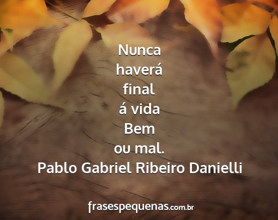 Nunca haverá final á vida Bem ou mal.