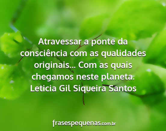 Atravessar a ponte da consciência com as qualidades originais... Com as quais chegamos neste planeta.Leticia Gil Siqueira Santos