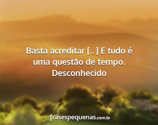 Basta acreditar [.. ] E tudo é uma questão de tempo.