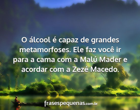 O álcool é capaz de grandes metamorfoses. Ele faz você ir para a cama com a Malú Mader e acordar com a Zezé Macedo.