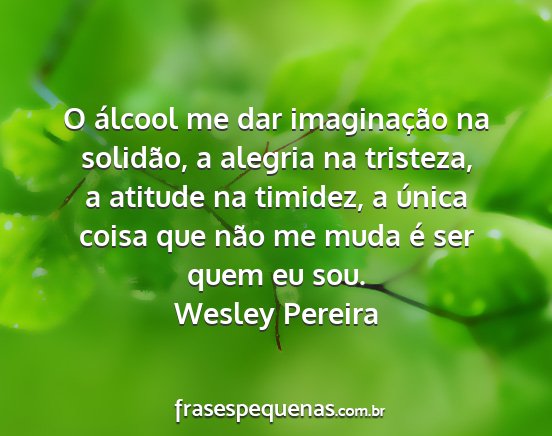 O álcool me dar imaginação na solidão, a alegria na tristeza, a atitude na timidez, a única coisa que não me muda é ser quem eu sou.Wesley Pereira