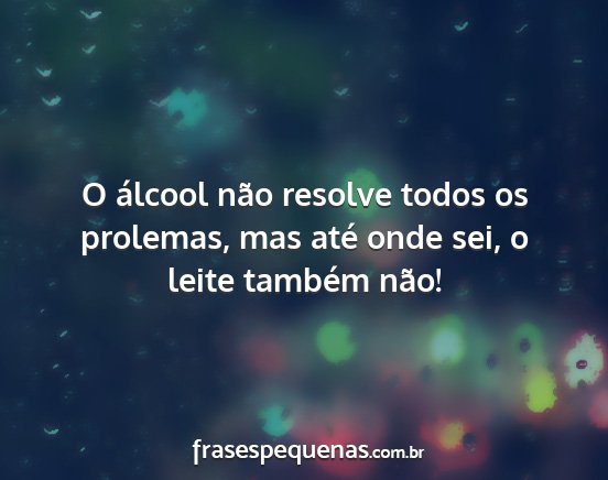 O álcool não resolve todos os prolemas, mas até onde sei, o leite também não!