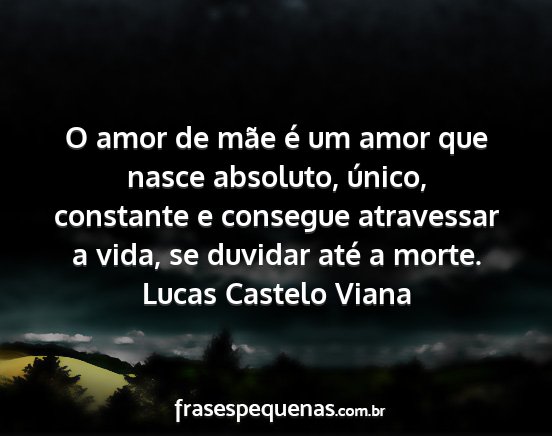 O amor de mãe é um amor que nasce absoluto, único, constante e consegue atravessar a vida, se duvidar até a morte.Lucas Castelo Viana