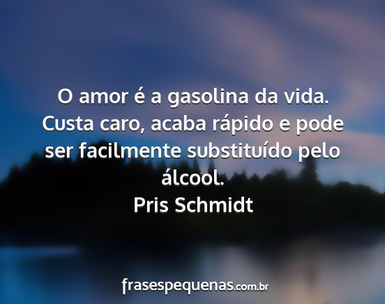 O amor é a gasolina da vida. Custa caro, acaba rápido e pode ser facilmente substituído pelo álcool.Pris Schmidt