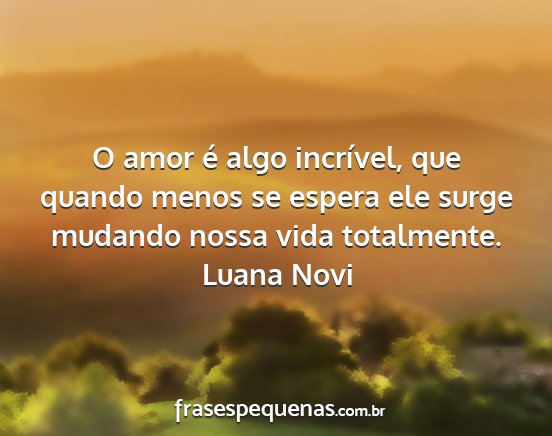 O amor é algo incrível, que quando menos se espera ele surge mudando nossa vida totalmente.Luana Novi