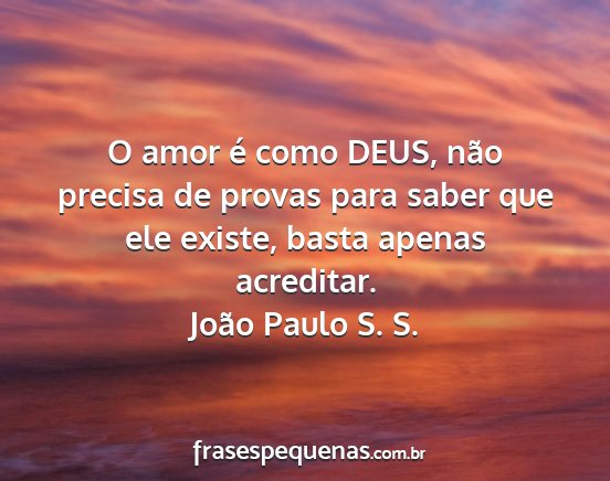 O amor é como DEUS, não precisa de provas para saber que ele existe, basta apenas acreditar.João Paulo S. S.