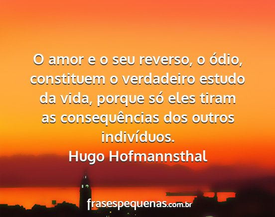 O amor e o seu reverso, o ódio, constituem o verdadeiro estudo da vida, porque só eles tiram as consequências dos outros indivíduos.Hugo Hofmannsthal