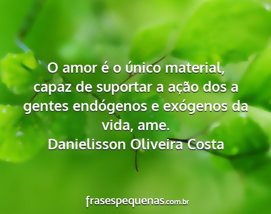 O amor é o único material, capaz de suportar a ação dos a gentes endógenos e exógenos da vida, ame.Danielisson Oliveira Costa