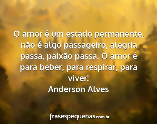 O amor é um estado permanente, não é algo passageiro, alegria passa, paixão passa. O amor é para beber, para respirar, para viver!Anderson Alves